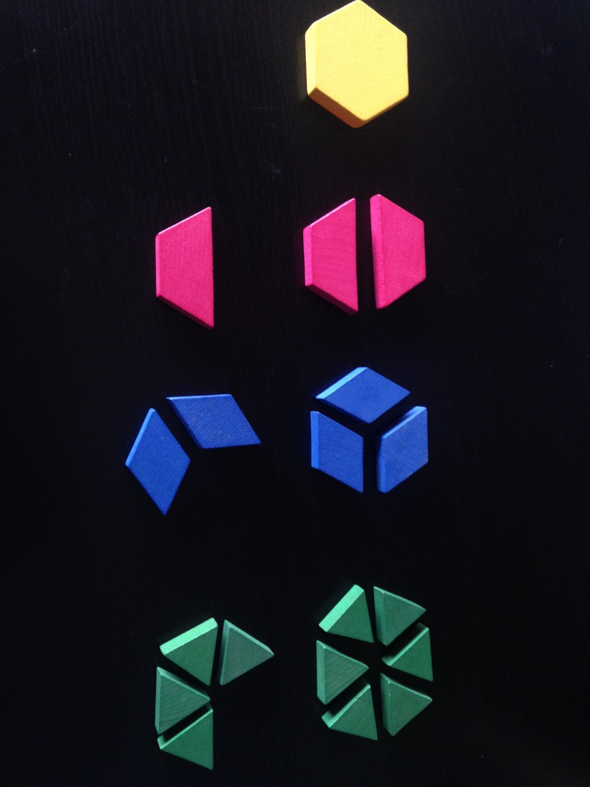 Se podría empezar con la comida, una manzana, una tableta de chocolate, … lo importante, en este caso, sería utilizar el lenguaje correcto, mitad, tercios, … desde el principio. No hay necesidad de evitar el lenguaje pensando que los niños no van a entenderlo, o que es demasiado complejo para ellos, y luego tener que forzar el vocabulario correcto cuando el adulto piensa que el niño ya tiene edad para conocer, que el niño ya debe saber como se dice en realidad.